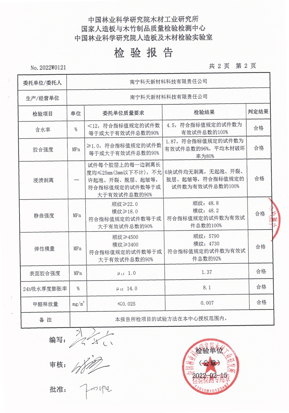 高聚KT板E0級檢測報告